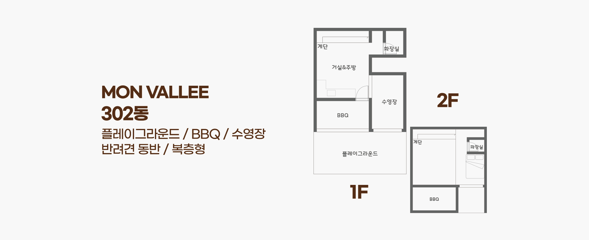 | 302동(애견운동장,풀빌라) | 27.83평 | 독채형/복층형/ 침대룸 거실 주방 화장실 | 2 | 4 | 309,000 | 339,000 | 469,000 | 319,000 | 349,000 | 529,000 | 389,000 | 519,000 | 619,000 | 619,000 | 619,000 | 619,000 | 329,000 | 359,000 | 549,000 |